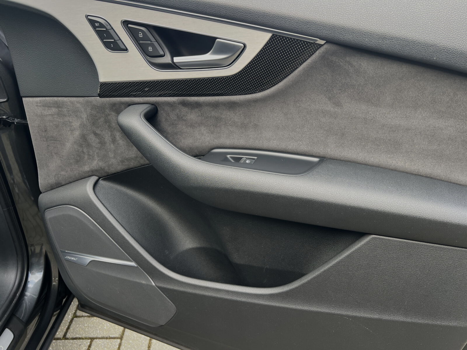 - Exterieur: S Line exterieur pakket, Daytonagrijs metallic, 22 Inch lichtmetalen wielen Audi sport, Elektrisch inklapbare buitenspiegels, Elektrisch inklapbare en verstelbare buitenspiegels, Luchtvering, Verwarmde buitenspiegels, elektrisch te openen en te sluiten panoramadak, warmte werend donker glas, Zwart optiek pakket (Audi Exclusive)